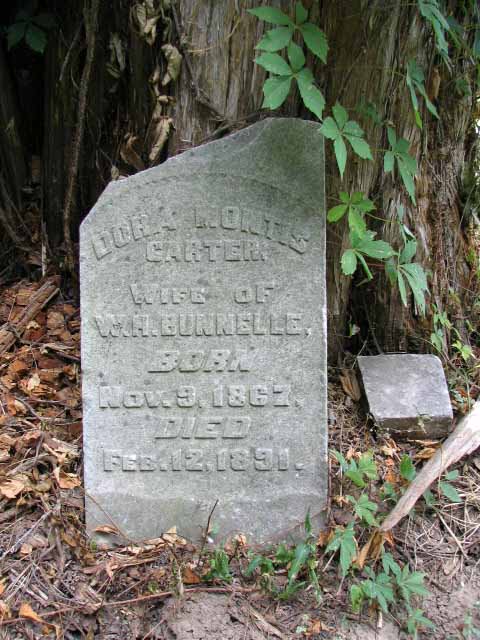 | Bunnelle | Dora Montis Carter | Nov 9 1867 | Feb 12 1891 | headstone | w/o W. H. Bunnell |
