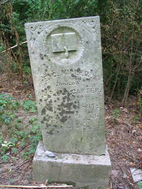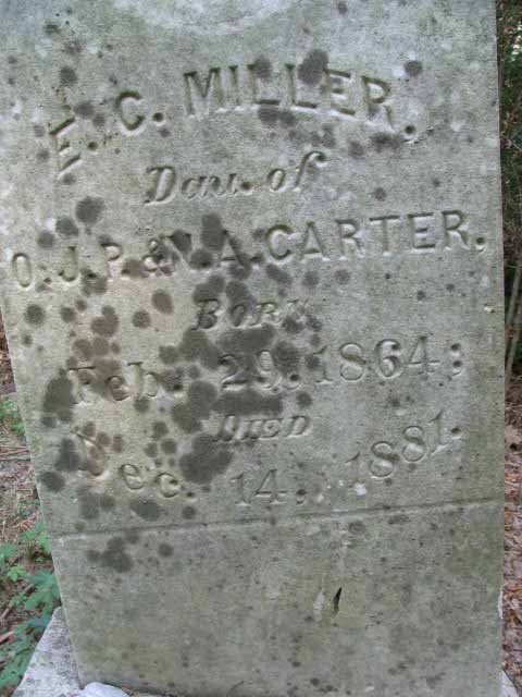 | Miller | E. C. | Feb 29 1864 | Dec 14 1881 | photo 1, photo 2 | d/o O. J. P. & N. A. Carter |