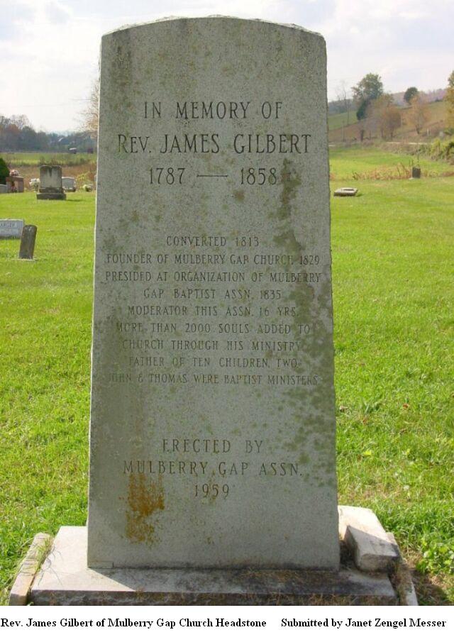Headstone photo of Rev. James Gilbert (of Mulberry Gap)