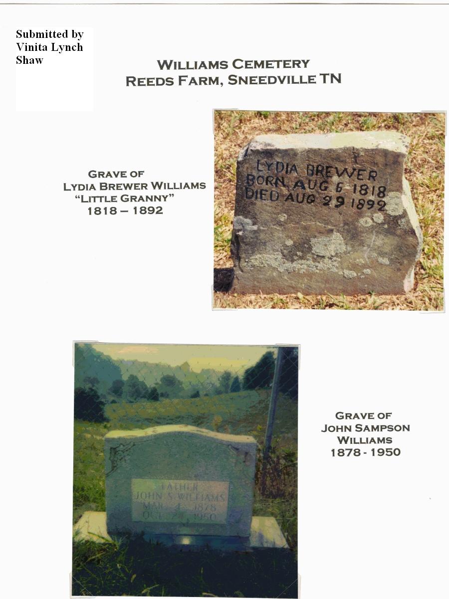 Headstone photos of Lydia Brewer & John Sampson Williams Added 2/06/05