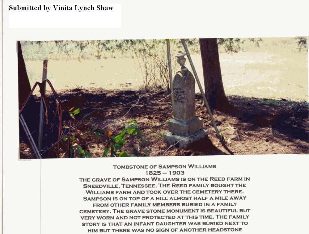 Up close photo of Sampson Williams headstone Added 2/06/05