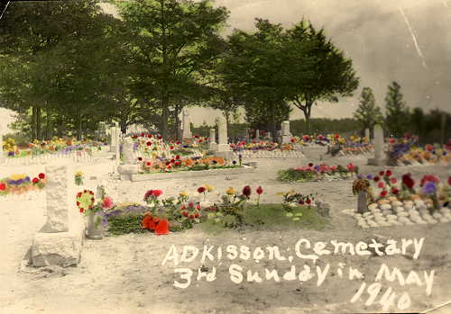 Hand-Colored Post Card Photograph of Decorated Adkisson Cemetery,