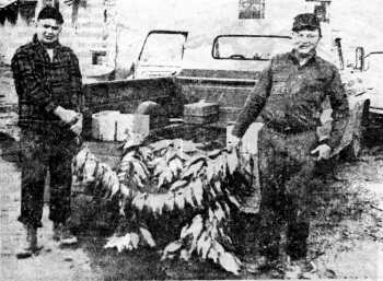 Game and Fish officials of the State of Tennessee were on the scene Saturday afternoon, and told Joe that they were sure of a state record, and that it was very possible that the catch would be a world's record. Most catfish that get near that large are of the yellow cat, or mud cat variety.