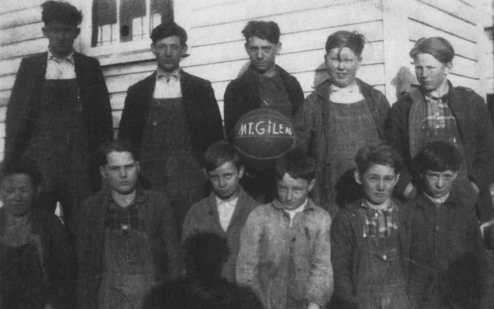 Mt. Gilead, about 1926. Kneeling left to right: Basil Meals, Clem Rainey, Henry Cook, James McCaslin, Woodrow Coffman, unknown.Standing left to right: Loy Davis Moore, Albert Cook, unknown, Howell Pegram, Henry Coffman. (Photo-Agnes Coffman)