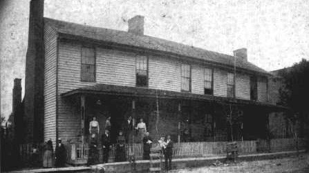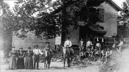 Standing in front of an unidentified house are persons believed to be members of the Hare family. The man holding the small child is believed to be John L. Hare. Note the many chimneys of the home. (Photo furnished by Debbie Hare.)