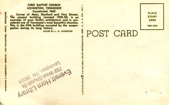From the First Baptist Church Vertical File, Everett Horn Library, Lexington, Tennessee