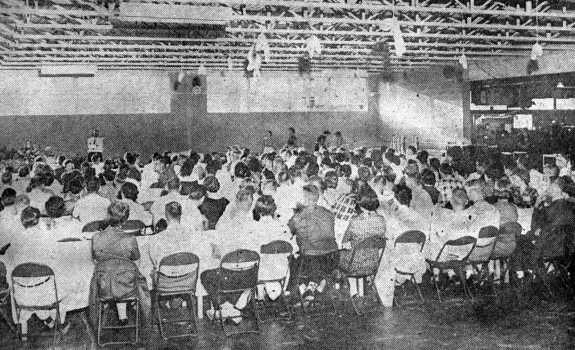 SOUTHERN WELCOME — Many Lexingtonites turned out at Franklin-Wilkins Field last Wednesday to extend a real southern welcome to Ohio employees of Harding Machine Screw Co. More than 50 longtime employees of the East Liberty plant were flown here for a "get-acquainted" day with local workers. The day also commemorated the fourth anniversary of the plant in Lexington as well as completion of the building for expansion here. (Additional pictures on Page 1, Section II.)