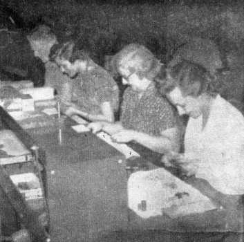 At the inspection table are Mrs. Reba Booth, Mrs. Dorothy Hinson,