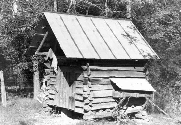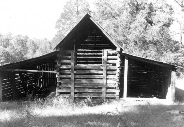 Old log crib said to have been the wagon shop of Louis James. Louis settled