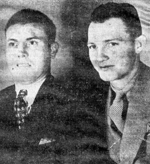 Winners of the men's popularity contest at State Teachers College were (left to right): Jesse Lancaster, best all-round man, and Julian Owen, most handsome. Clyde Gilliland (not in picture) was voted the most popular.