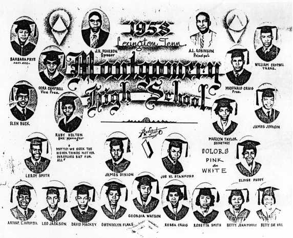 Professor George William Beal 1891-1960, was one of the early pioneers of education in Henderson County, beginning prior to the 1920s. He taught at four of the seven schools for African Americans. These schools were Coopers Grove, Kizer, Lexington Colored School, Park Meal, Pleasant Hill, Pritchard and Timberlake School, where he was principal in 1941. Six of these were rural schools and one was within the city. In time, people in the community expressed a desire for a new school. The community had to raise $5,000 before the board would grant the citizens the necessary funds to build what eventually became Montgomery High School, which originally housed grades one through eight. The citizens, doctors, lawyers and members of the business community of Lexington were asked to donate money for construction of the new school. Each teacher was asked to raise $60. Montgomery School was then built and served eight counties. In the early years, girls from outside the county were able to stay in a dormitory, while the. boys roomed out and then traveled home on weekends.