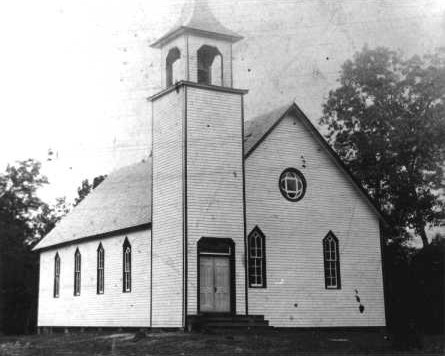 Our first church in the late 1800s was located where the Wayne Holmes' drive way is. That church was known as the Rock Hill Methodist Church. The seats were split logs with peg legs. That church burned.
