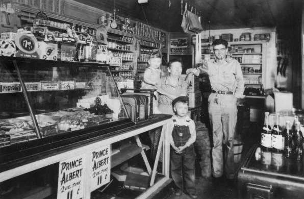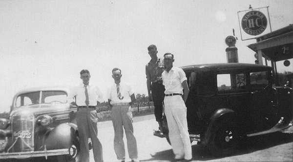 Outside Threadgill's Store in the late 1930s. Left to right Hilburn White,