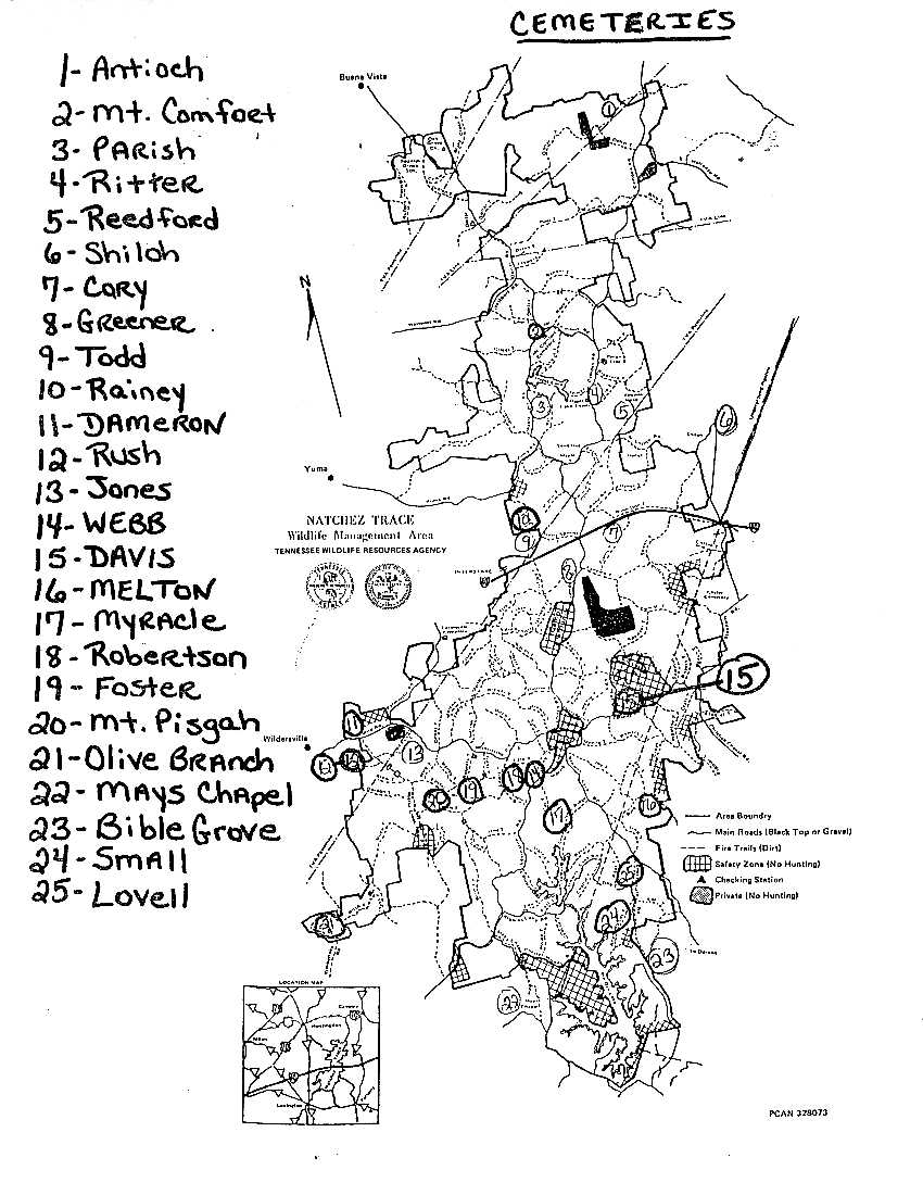 Excerpt from Cemetery Map distributed at Natchez Trace State Park Visitors Center (1999)