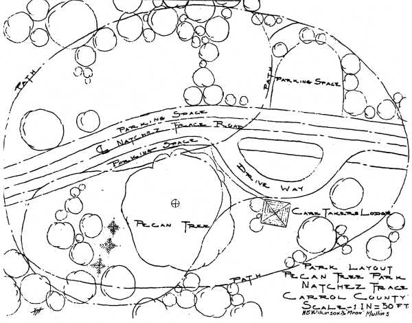 The general landscape scheme for the Natchez Trace Forest should not be naturalistic but natural. Any work that is done should look as though it had always been there. This is going to be somewhat of a problem as man has already left his mark to a very marked degree. The scars that have been left by his occupation and the following erosion is a condition and not a theory.