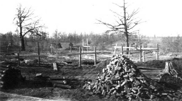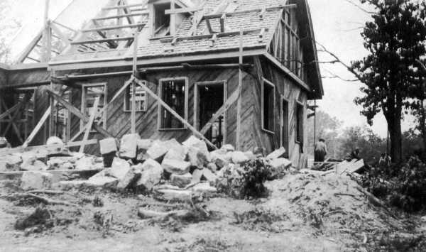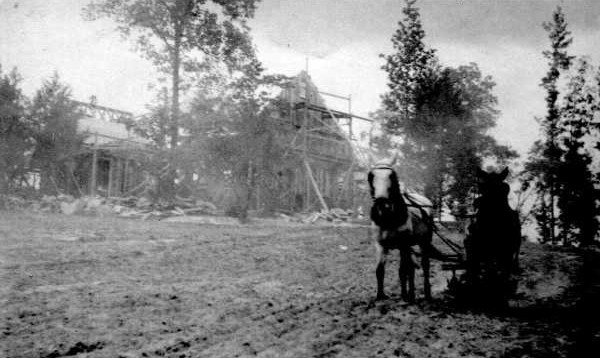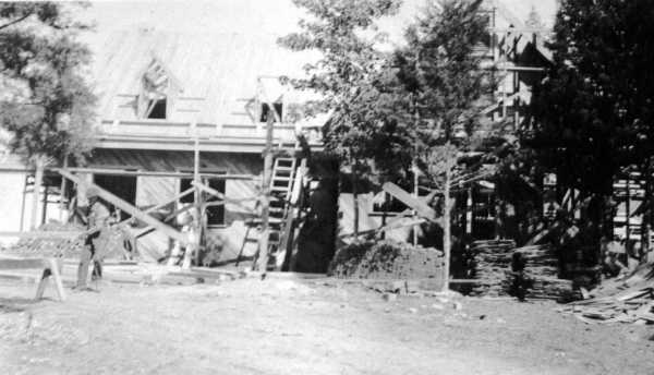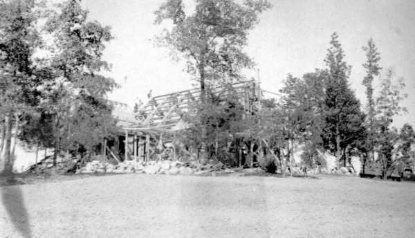 The following photograph are from the collection of Natchez Trace State Park. In 2001 they were on a photo album page labeled "Building the Public Lodge." The originals were 4" x 2½" snapshots.