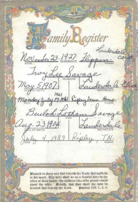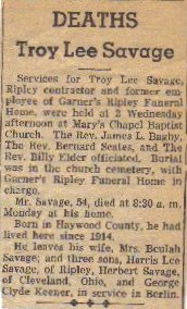 Troy Lee Savage (b. May 5, 1907--d. July 17, 1961)