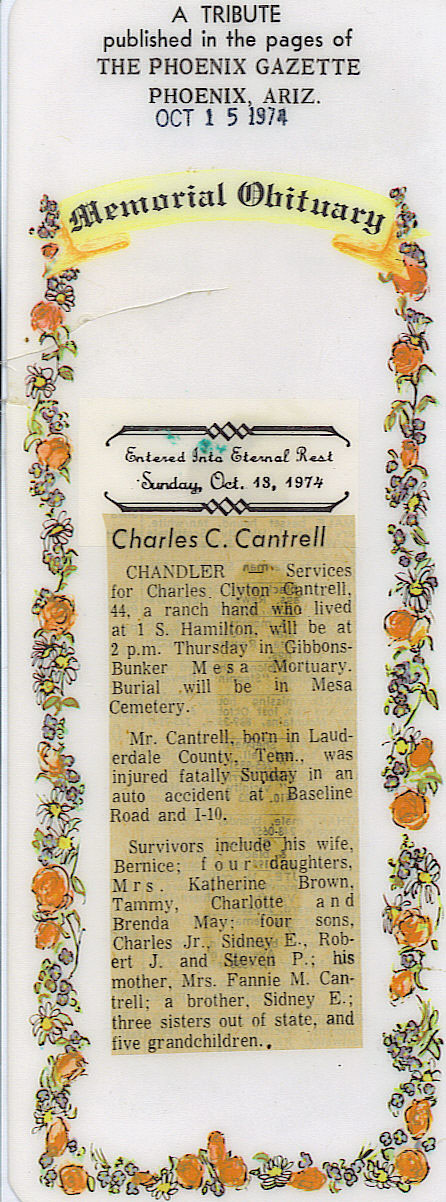 Born in Ashport Lauderdale County, TN. He moved to Blytheville with his family and then to Mesa, Arizona in 1960 and on to Salem OR 1965. No matter where he went his home was Tennessee and Arizona.