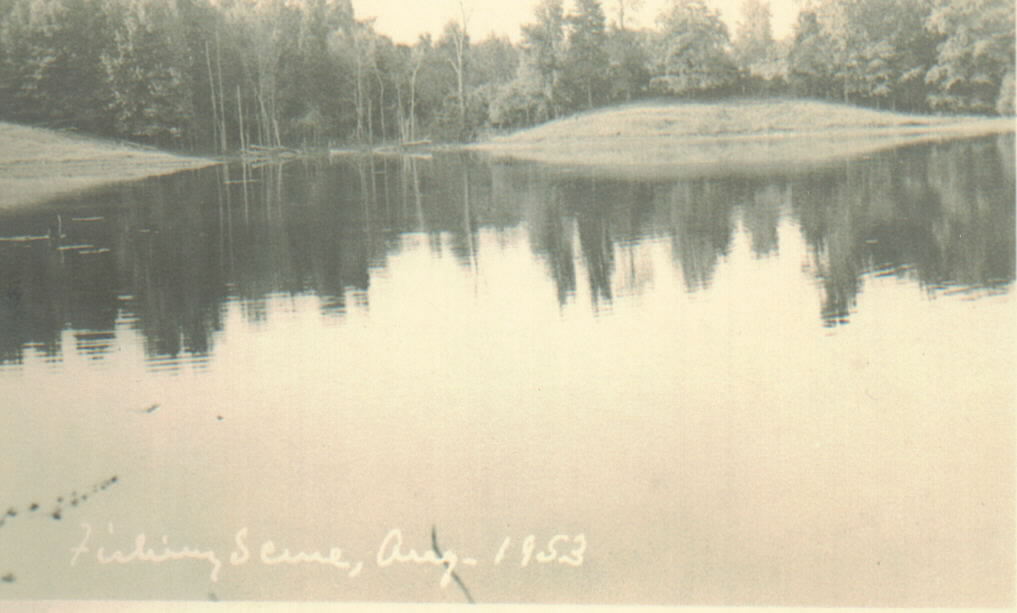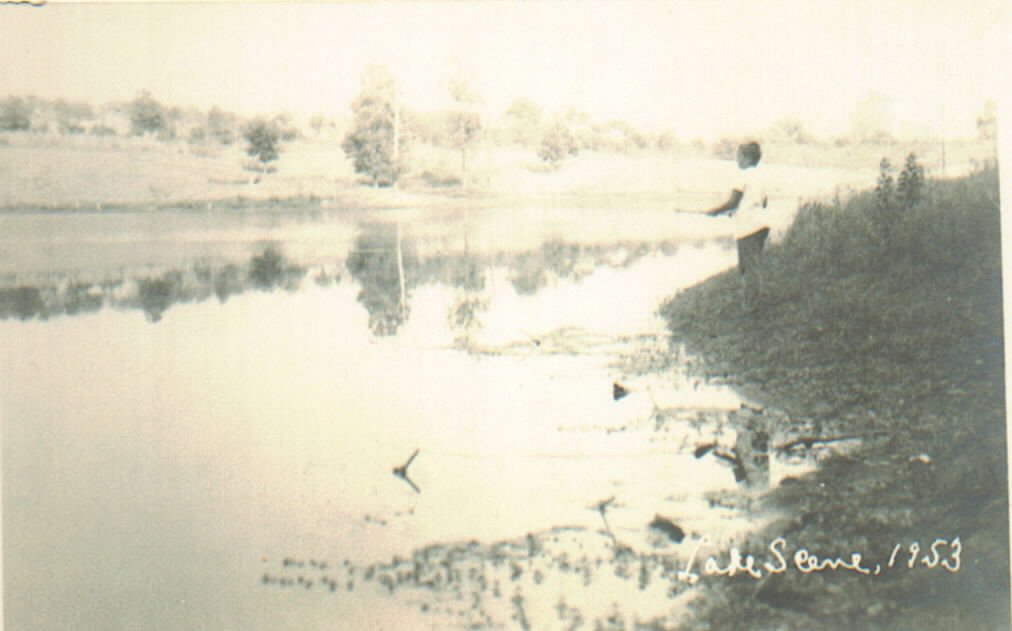 These photos were taken in August 1953 at the home of Will and Roxie Simpson in Arp. The photographer made the photos into postcards. This unknown lake is in the back of the home in Arp on William Becton Road. This lake is where my mother learned to fish.