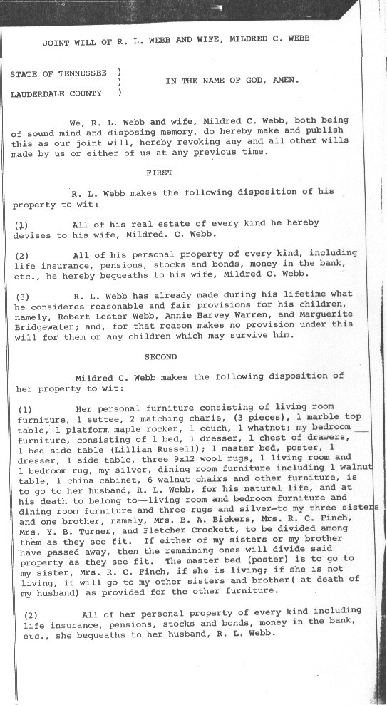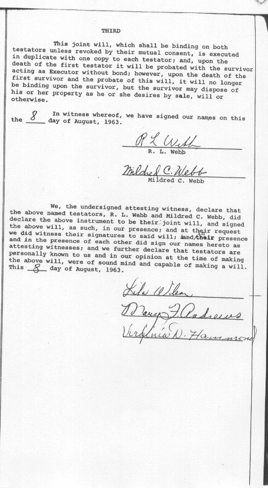 Joint Will of R. L. & Mildred C.Webb (1963)