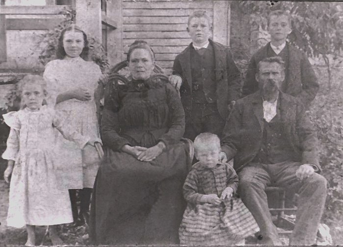 William B. Solomon & Susan Merrell Solomon Family (84 KB) L to R: Minnie Bell Solomon (my maternal gm Mullins), Beatrice Dorinda Solomon, Susan Merrell Solomon(my g gm), DeWitt Solomon, John Marvin Solomon(seated), William Bennett Solomon(my g gf) and Charles M. Solomon, Photographed circa 1896, Lincoln Co., TN, 16th District. Courtesy of and many thanks to: Sherry Ohm via DeWitt Solomon(deceased). Donated by Joe Max Williams. Jim Mullins, family and friends on the occasion of his 75th birthday at his home, near Dellrose, in Lincoln County, Tennessee. Donated by Joe Max Williams.