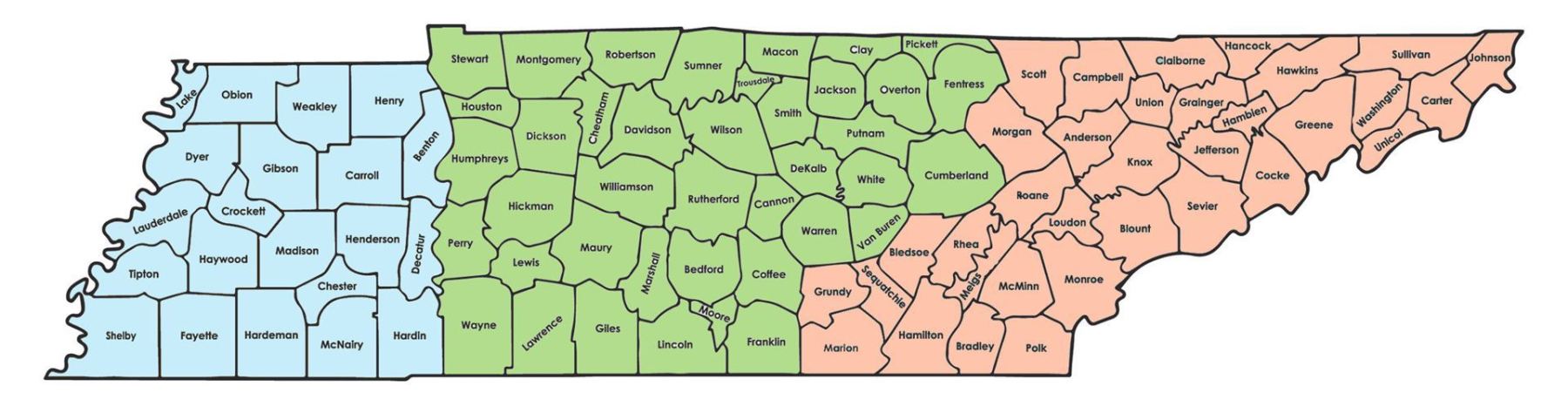 Lincoln County Maps Lincoln County Maps June 12, 2023 Bettye Liberty Tennessee Counties Image 6 of 6 West, Middle, and East Divisions of Tennessee.