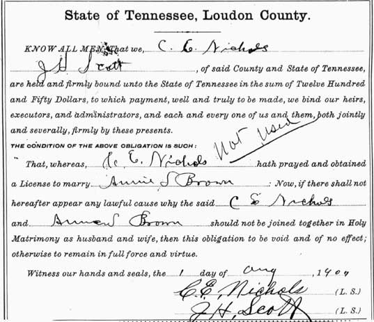 The Loudon County TNGenWeb Project makes no claims or estimates of the validity of the information submitted and reminds you that each new piece of information found should not be taken at face value, but should be researched and proved or disproved by weight of evidence. You are welcome to copy information found at the Loudon County TNGenWeb for personal use and share information with other researchers or genealogical organizations, but this information may not under any conditions be sold or used in a commercial project without expressed prior written permission.