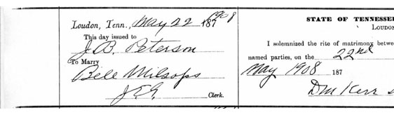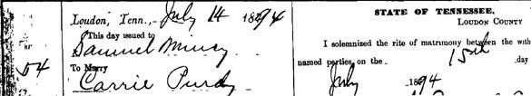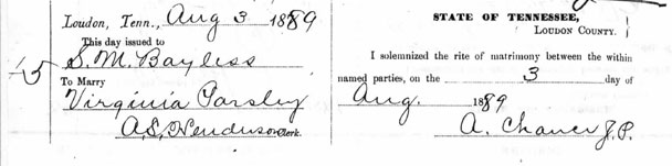 Brenda Oody has been visiting the Loudon County Courthouse and copying various marriage records. She has made copies and submitted them to the Loudon County TNGenWeb Site. Each certificate is linked under the grooms name and the bride's name. We would like to thank Brenda for her generous contribution.
