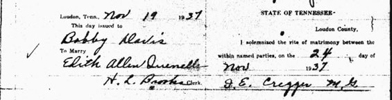 Brenda Oody has been visiting the Loudon County Courthouse and copying various marriage records. She has made copies and submitted them to the Loudon County TNGenWeb Site. Each certificate is linked under the grooms name and the bride's name. We would like to thank Brenda for her generous contribution.