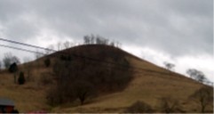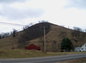 Below are pictures of an unusual hill that one person referred to as resembling a catchers mitt. This hill is located directly across the highway from the Wright Cemetery.