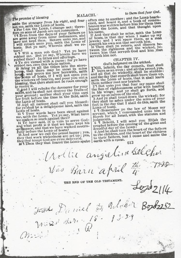 Mollie Angeline Belcher born Apr. 4, 1898 and (died Apr. 19, 1913)