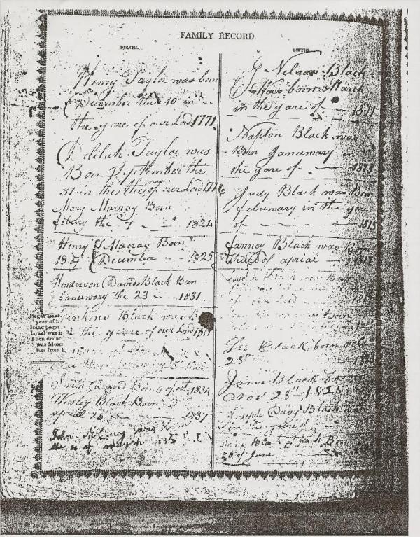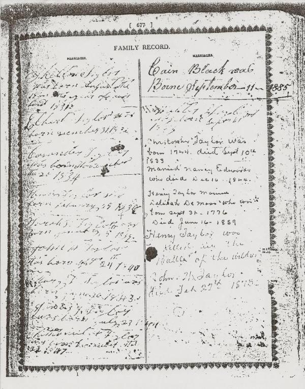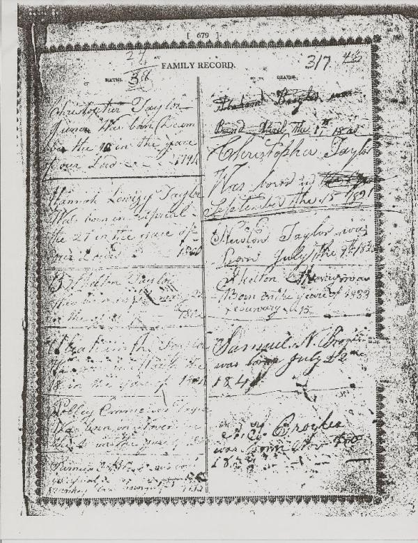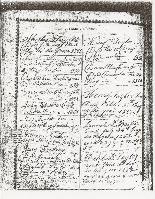 Christopher Taylor b. 1744, d. Sep. 10, 1833, married Nancy Edwards d. Dec. 10, 1844