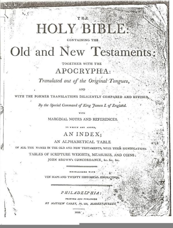 Transcribed Sep. 4, 1984. Bible belonging to Mrs. Ralph (Verna Deakins) Britton