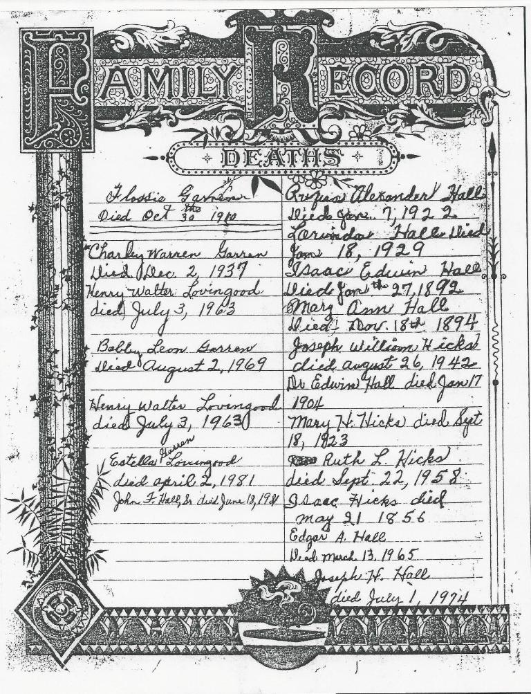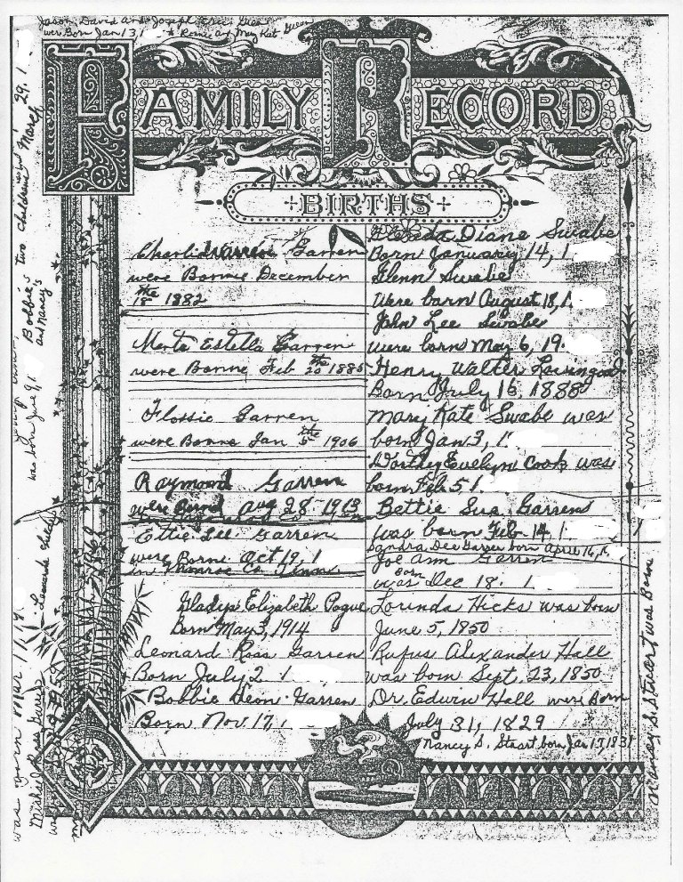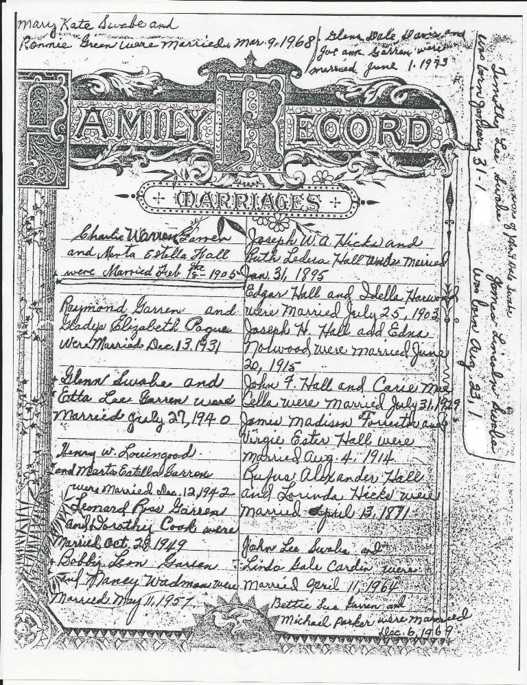 Charles Garren & Estella Hall Bible Record