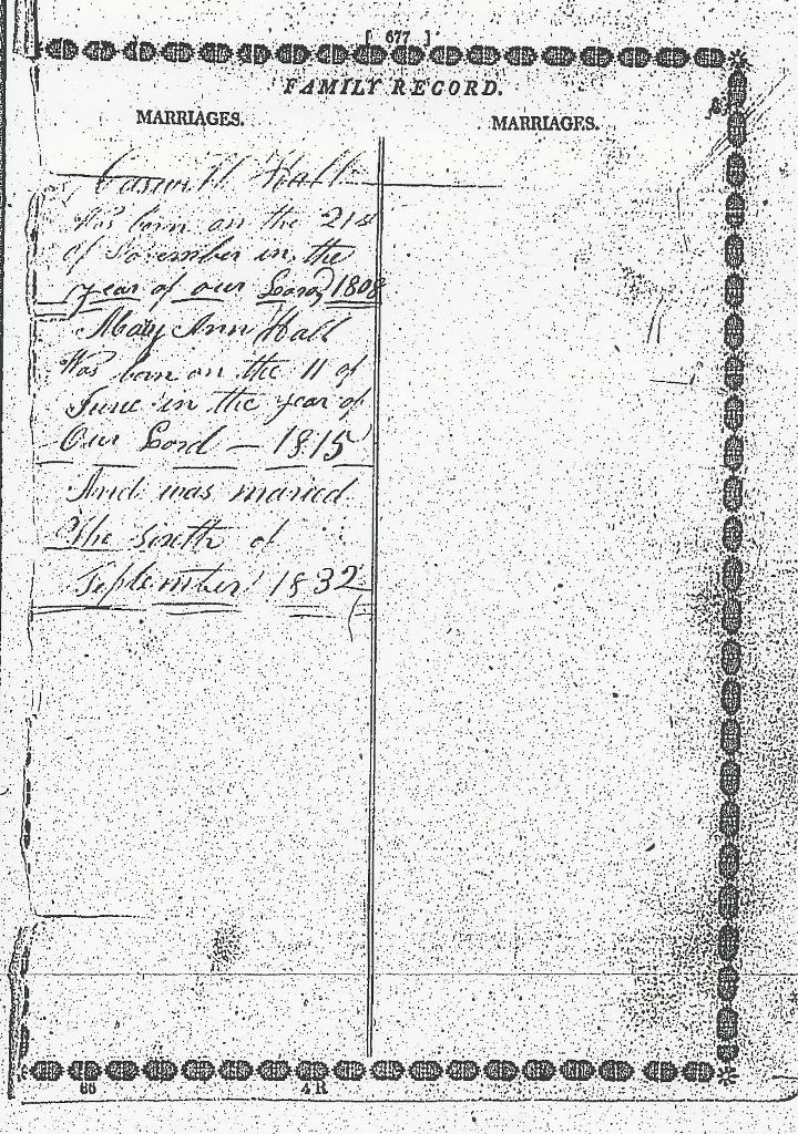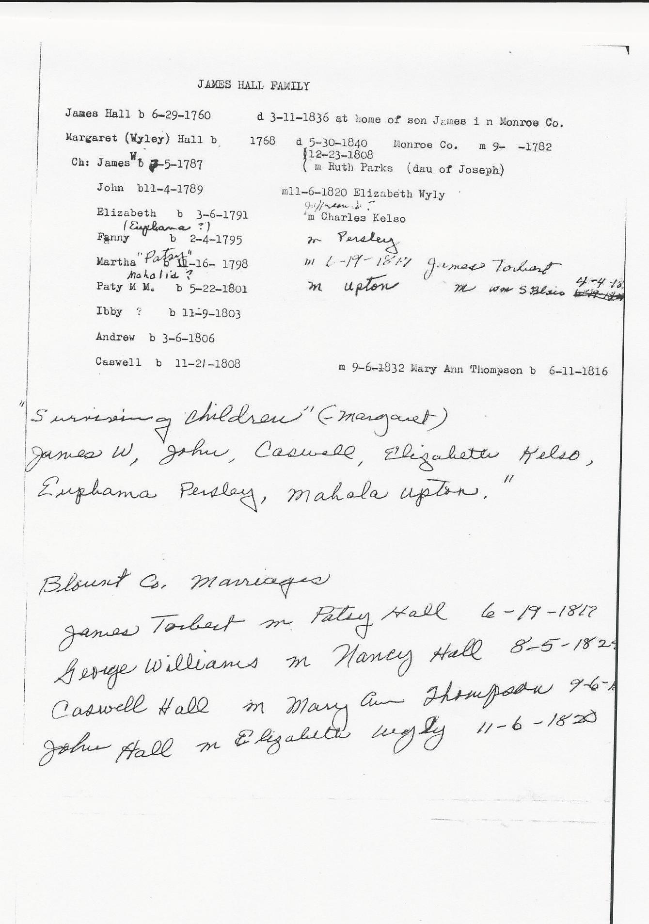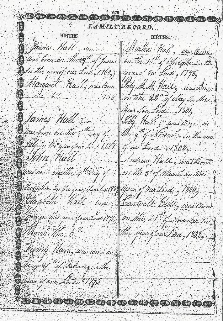 James Hall b. 1760 & Margaret Wyley Bible Record