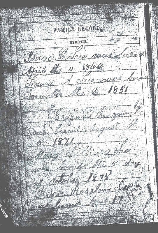 This Family record of Isaac Carroll Lee found in "Bible Records-Tombstone Inscriptions"