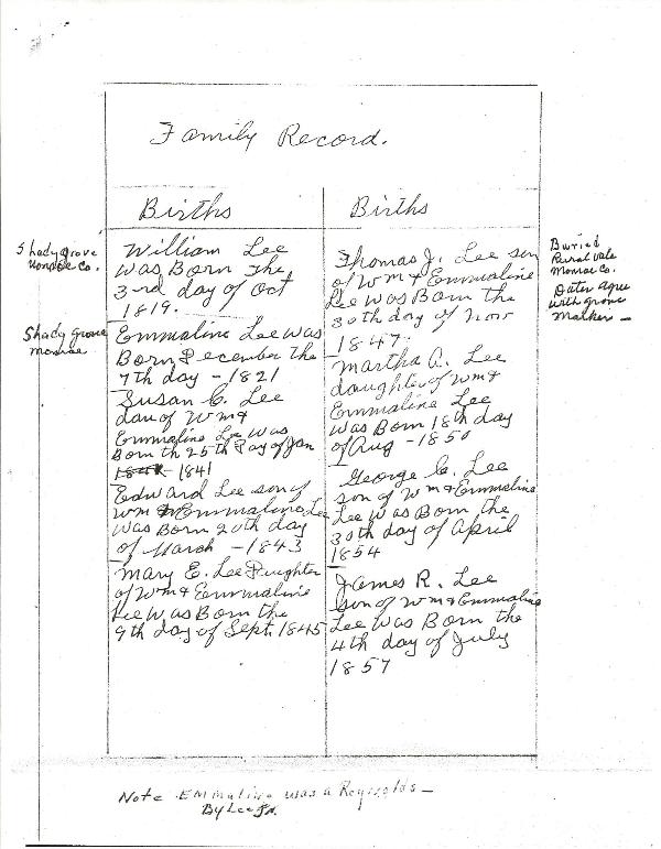 William Lee (born 1819) Bible Record