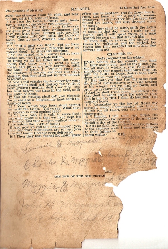 NOTE: There is no reference to the children of Jackson and his third wife Julia Yates. From what I have been told, Julia started a new Family Bible with her childrens' info. I was also told that this Bible was destroyed in the 1980s from a leaky garage.
