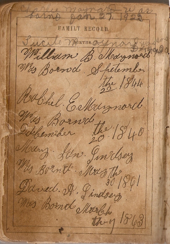 Marriages & Births (Children of Charlie & Sallie)(I believe my dad or one of Charlie Maynard's children wrote this as a small child.)