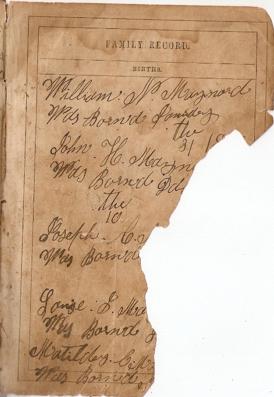 Misc. (This page list the children of Margaret Yates Maynard (Second wife) probably written by Margaret.)