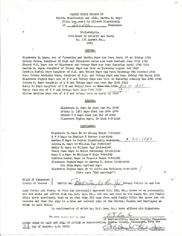 Blackmore H. Mayo Bible Record
