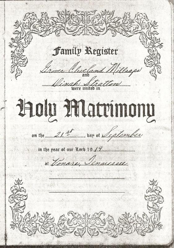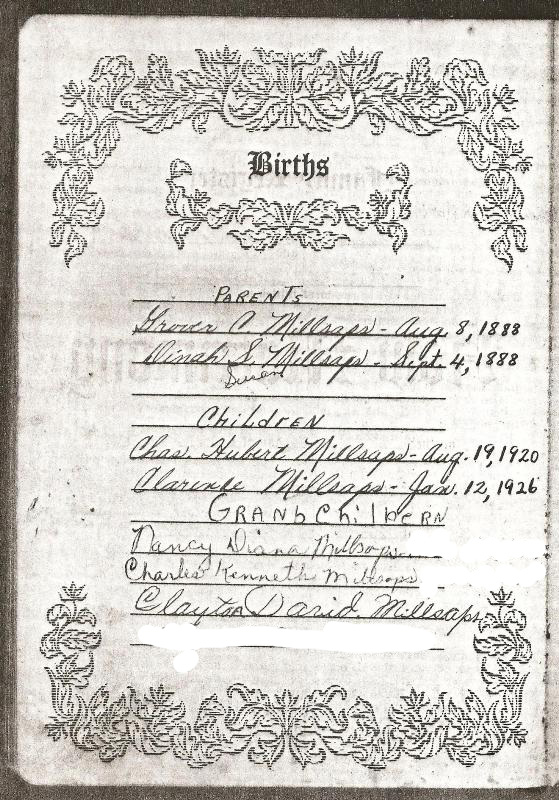 Grover Cleveland Millsaps Bible Record