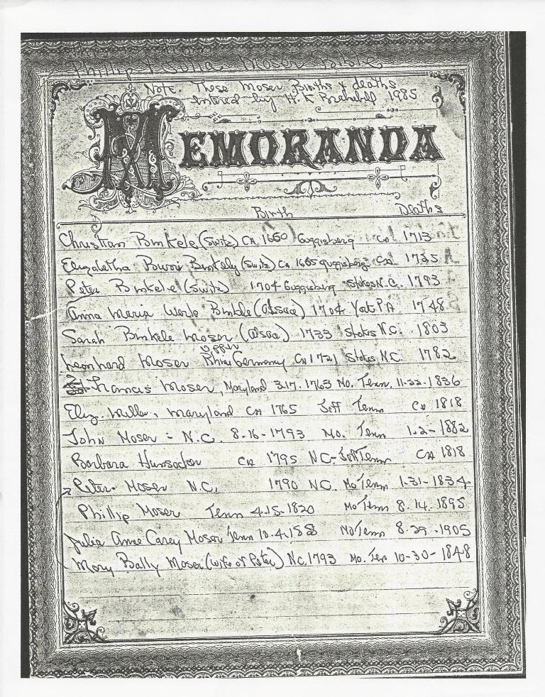 Phillip Moser Bible Record