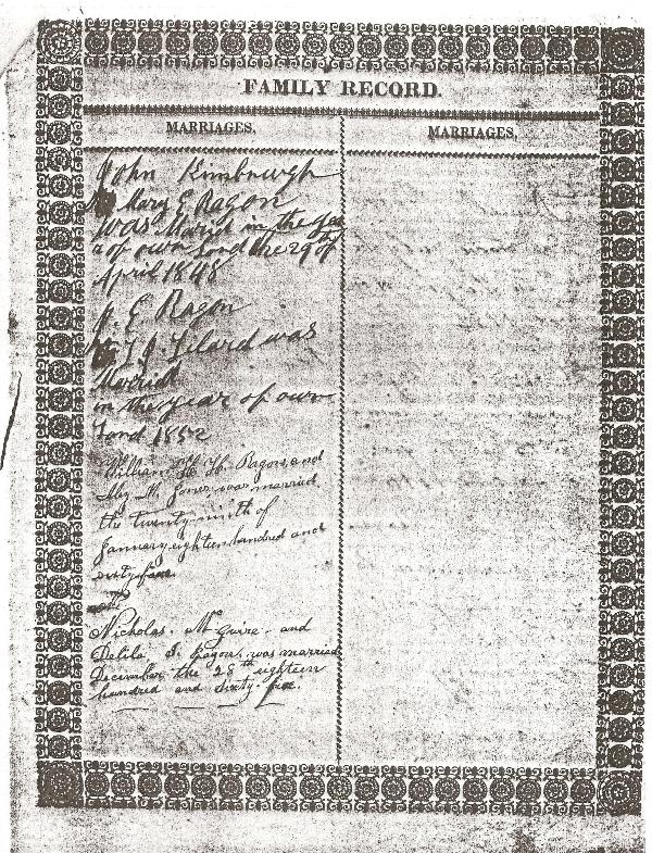 Nicholas McGuire and Delila J. Ragon was married Dec. 28, 1865