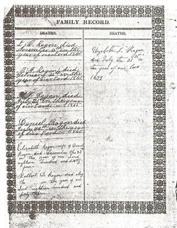 Elizabeth Ragon, wife of Daniel Ragon, died Dec. 29, 1864