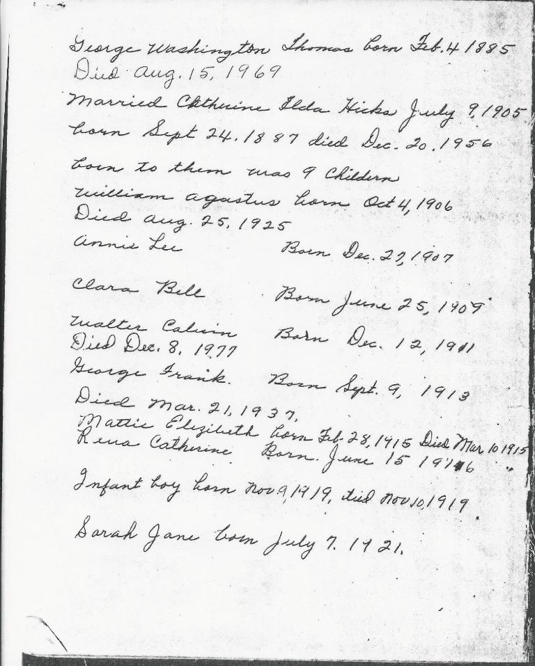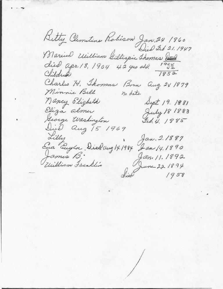 William Gillespie Thomas Family Record