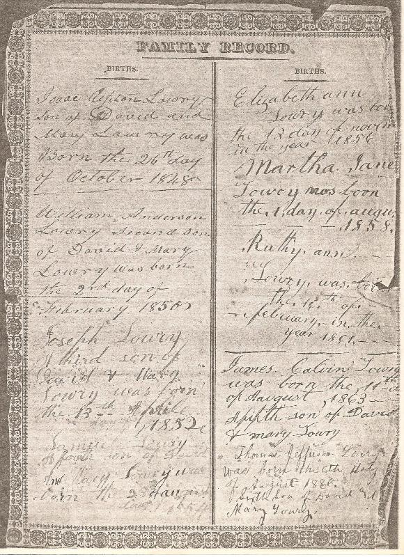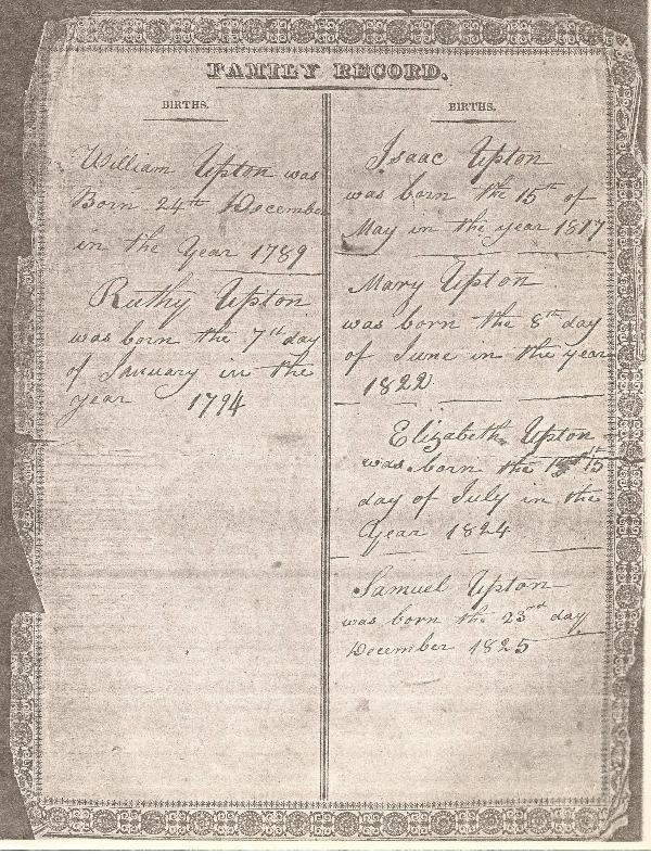 William Upton Bible Record includes Lowery