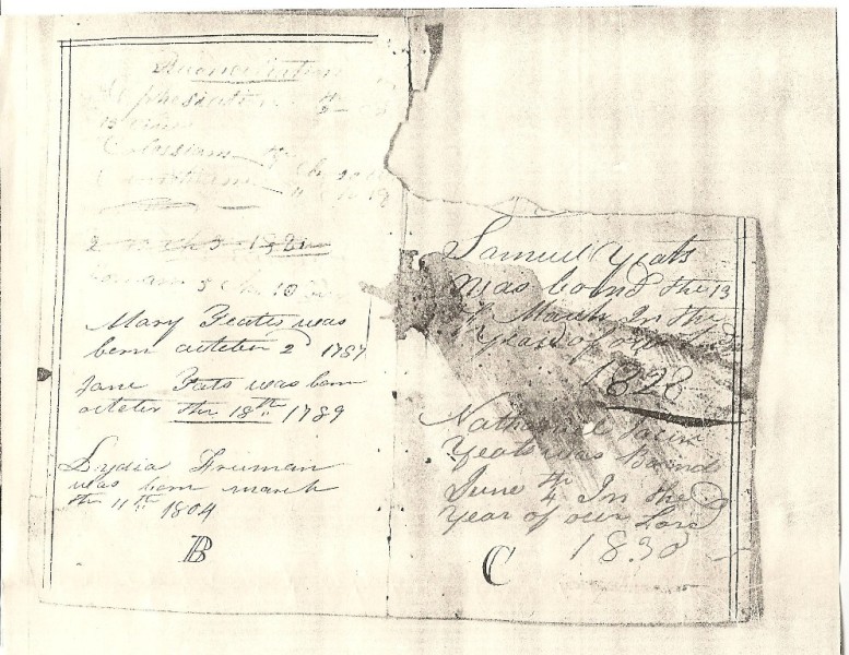 Nathaniel Jacin Yeats was bornd June 4th 1830 (child of Samuel and Lydia)