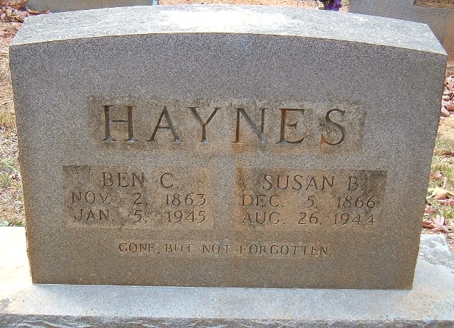 November 2, 1863 | January 5, 1945 | [Plot Ben C; Susan B.] Father; S/o Benj. Grayson & Nancy Catherine Sales Haynes |