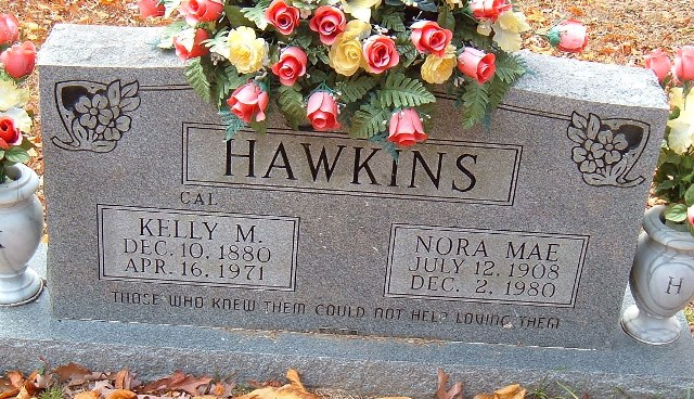 December 10, 1880 | April 16, 1971 | [Plot Kelly M. "Cal; Nora Mae ] Dad; S/o Nute C. & Hettie Bivens Hawkins |